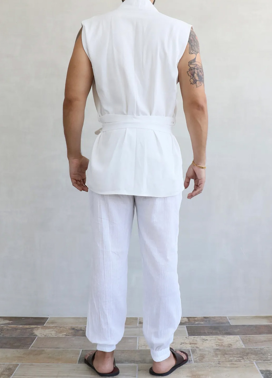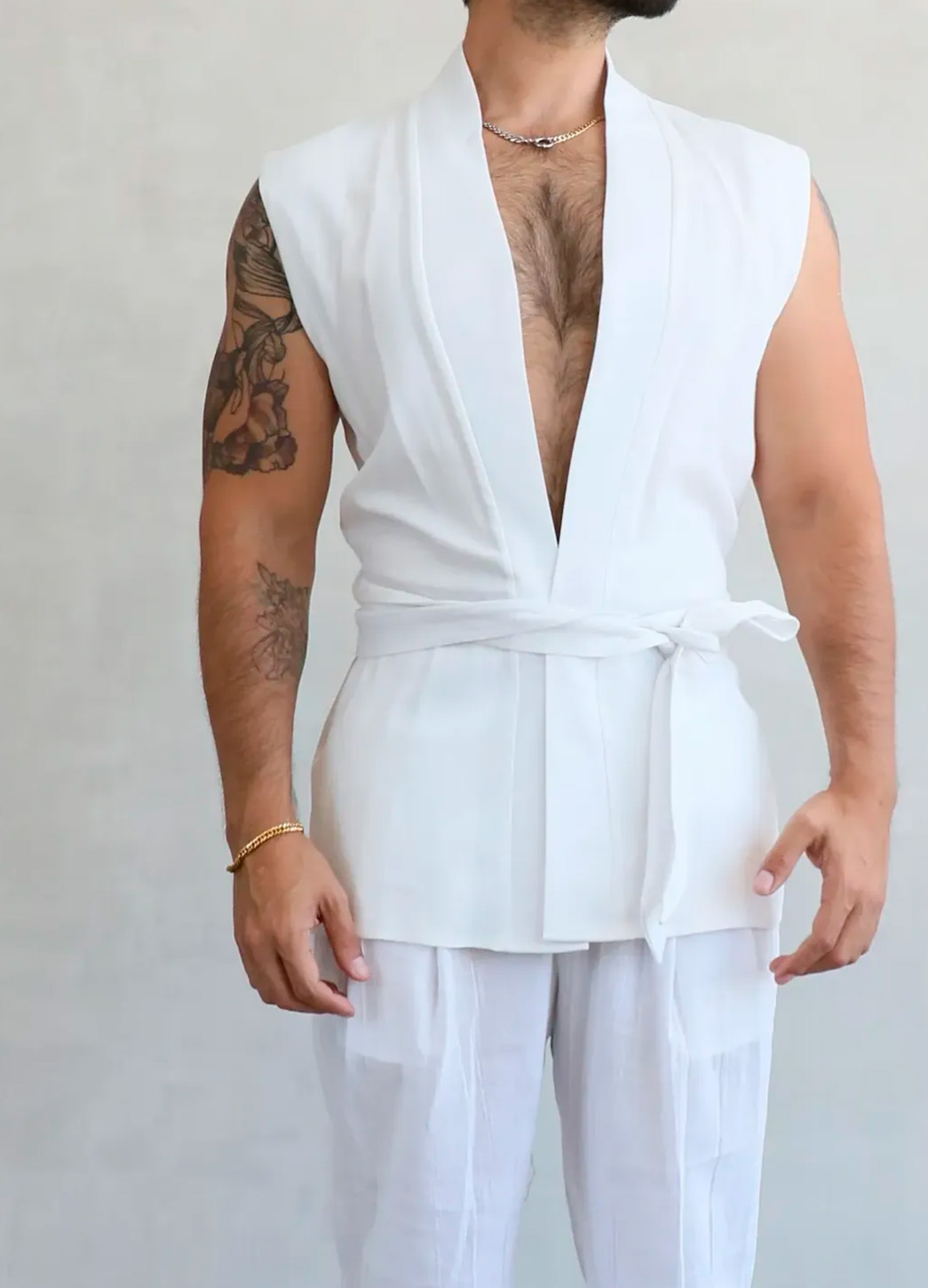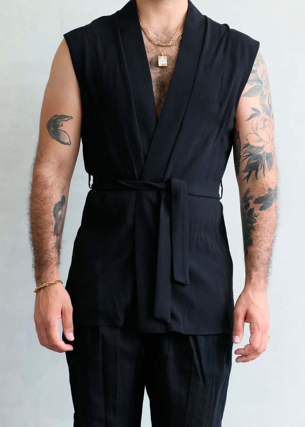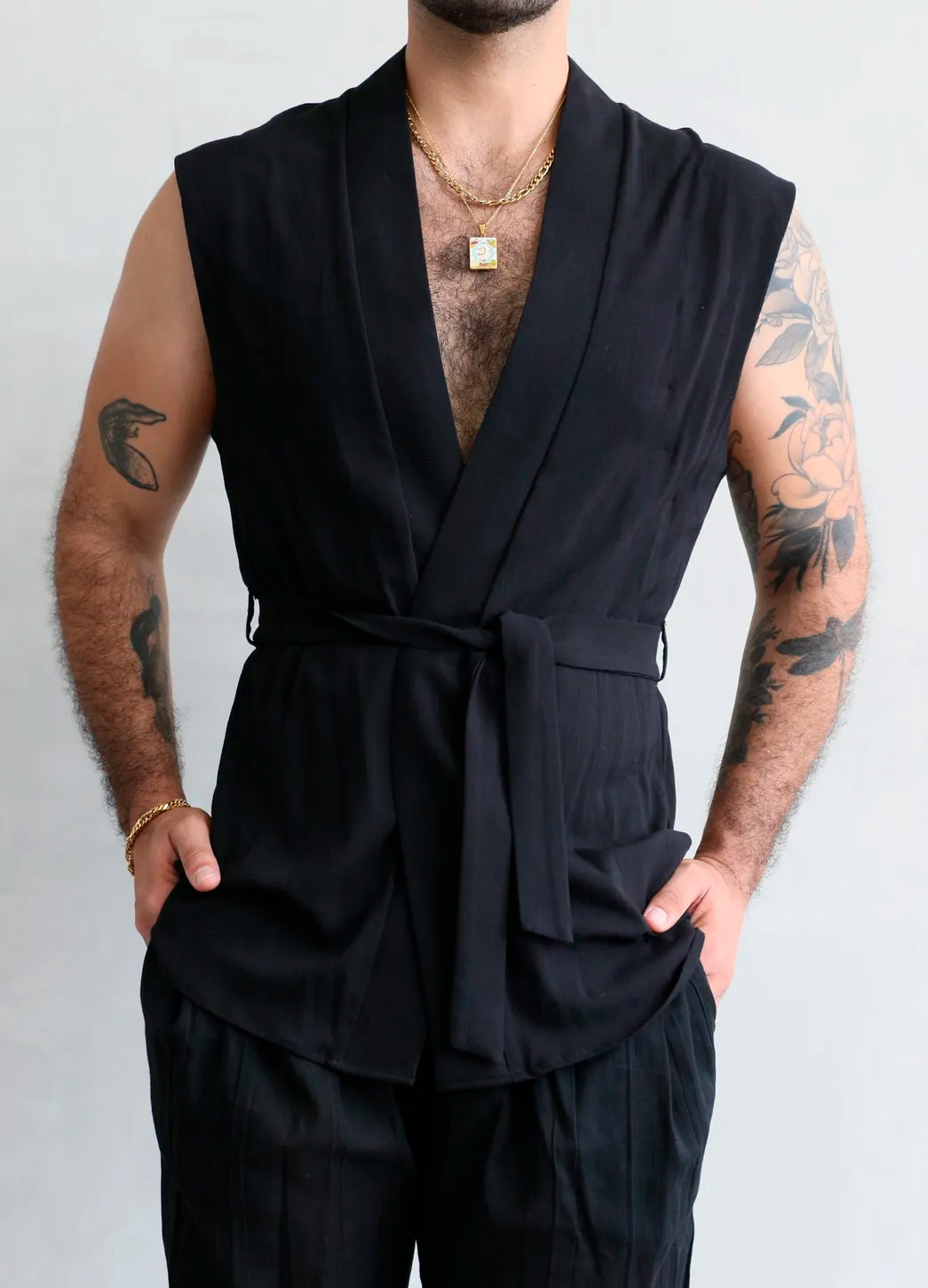 La Camisa Maak es una pieza ligera, moderna y perfecta para elevar cualquier outfit. Su diseño sin mangas, escote profundo y corte tipo kimono crea una silueta limpia, fresca y elegante. Incluye un cinturón integrado para ajustar la cintura y lograr un fit más estilizado.
