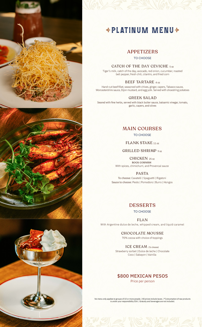 Discover the essence of Argentine cuisine in Cancun at Bodega Argentina, an authentic Argentine restaurant in the heart of the city. Here, each dish tells a story of passion and tradition, taking you straight to the streets of Buenos Aires. Our steakhouse and its menu are a fusion of flavors that pay homage to Argentina's rich culinary heritage, where every bite is a sensory experience that connects you to the authentic essence of the River Plate. From the juiciest cuts of meat to porteño classics, each dish is a tribute to the passion for good food.