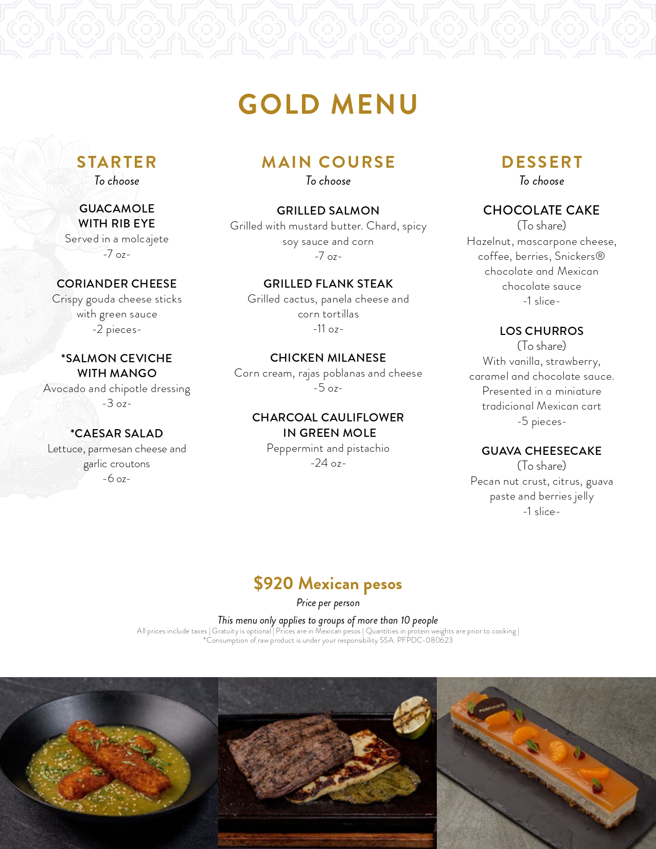 Our kitchen recreates the most exquisite Mexican delicacies , respecting the flavors of yesteryear and adding a creative touch of bold combinations and ingredients carefully selected.