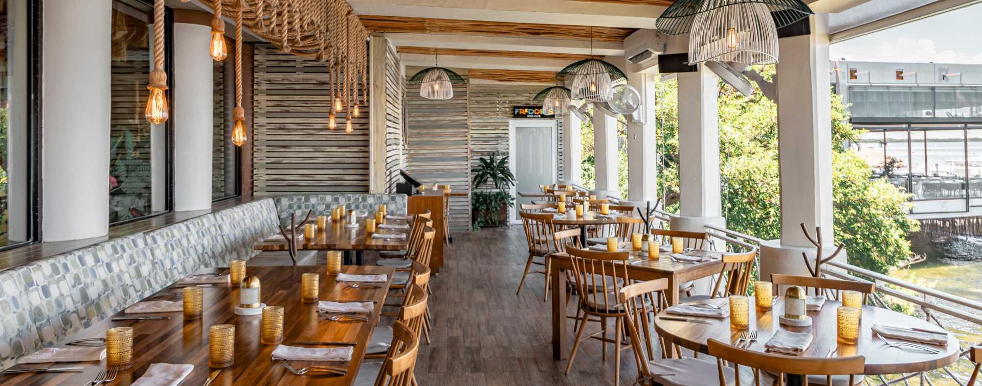 Nuestro servicio va a compañado de atenciones y lo ameniza una atmósfera formada por mobiliario, decoración, materiales y colores que rinden homenaje a la vida en el mar; con acentos, tomados de la naturaleza, puestos en nuestro salón principal, terraza y villas.