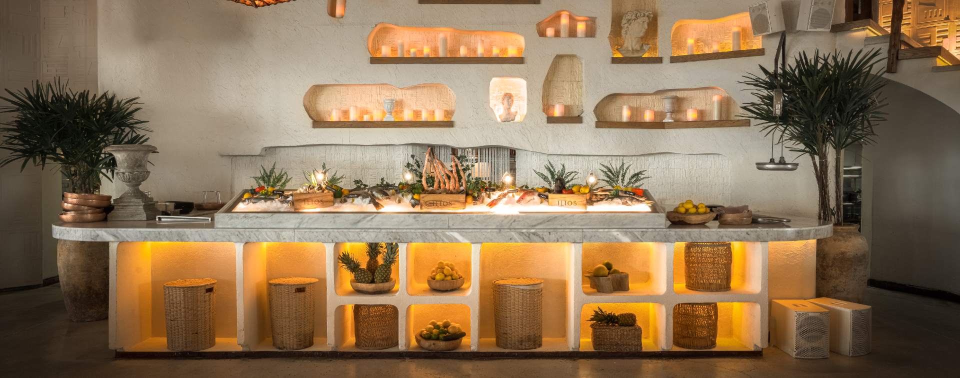 Ilios rinde homenaje a la cocina griega al llevar la gastronomía tradicional a un nuevo nivel de elegancia y sofisticación en medio de una decoración con un diseño excepcional, arquitectura eco-integradora y armonía visual en cada rincón, Ilios es un espacio íntimo que te hará disfrutar de experiencias asombrosas.