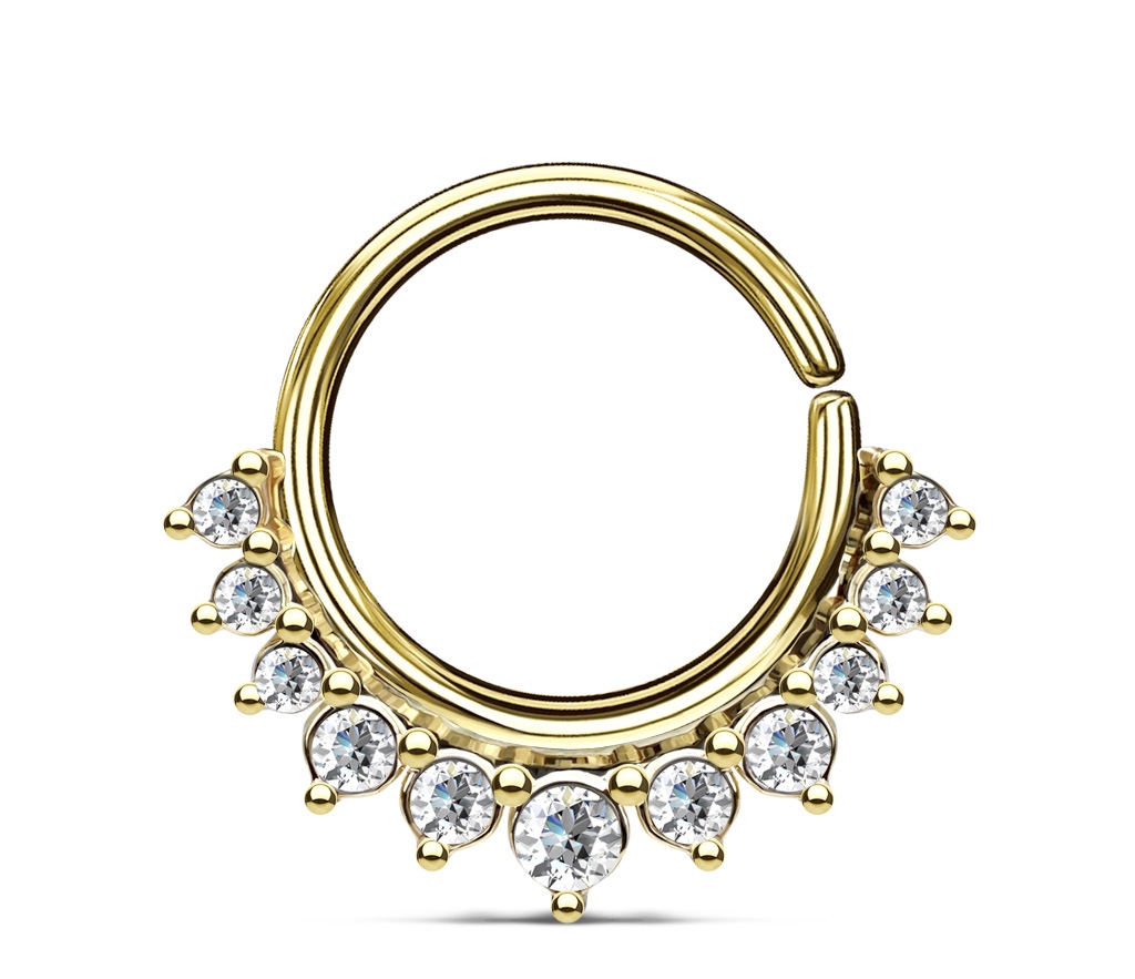 Piercing de 10MM en acero quirúrgico con baño de oro y zirconias